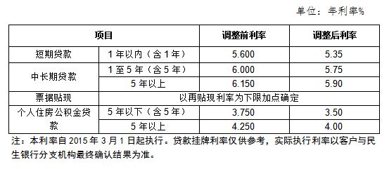 人民币贷款利率调整表(2015年3月1日起执行)