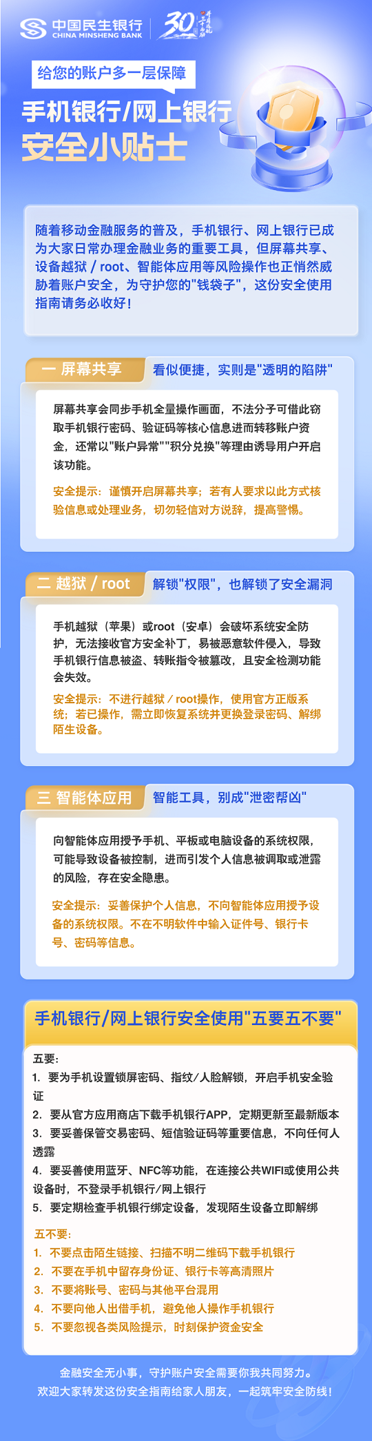 手机银行/网上银行安全小贴士——给您的账户多一层保障