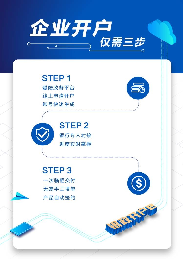 1、工商注册一键开户:从工商登记注册到银行账户开立全流程对接;