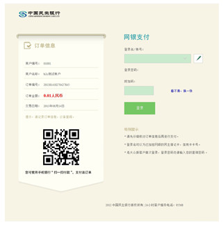 3、二维码订单:您在进行网上购物订单支付时,没有网银没关系,没有支付宝也没关系,只需用民生手机银行二维码付款功能,扫一扫订单二维码,即可实时付款。便捷、时尚的支付体验,玩转二维码,“码”上付!