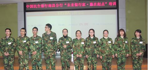 1月5日,南昌分行2015年“未来银行家”岗前集训正式拉开帷幕。通过一个多月的笔试、测评和面试流程,南昌分行从全国各大院校2600余名应聘者中优 选了70余名优秀学子作为分行新一批的备选人才。为增强团队凝聚力,帮助新员工更快更好地融入民生大家庭,分行开展了一次以“融入、激情、标准、团队”为 主题的岗前封闭式集训。