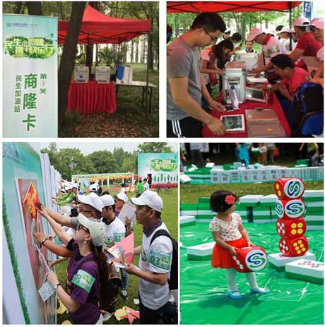 将民生银行的小微业务普及知识巧妙嵌入其中,寓教于乐。许多受邀的小微客户举家出动,小朋友们在户外尤其活跃,各个团队你追我赶,带队的民生员工也认真出